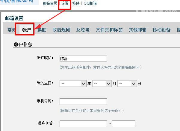 1、首先我们登录你的腾讯企业邮箱,然后我点击设置,点击“账户”选项卡