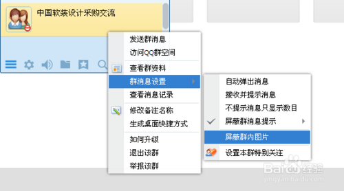 情况一,屏蔽单个QQ群的群内图片。选择某个群,右击进入“群消息设置”-“屏蔽群内图片”即可勾选。如果需要取消屏蔽的话,重复上面步骤即可取消勾选。