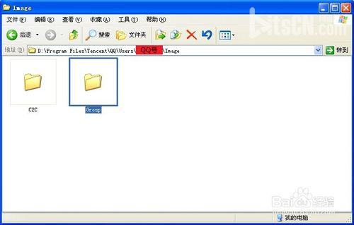 1、首先,打开路径:D:\Program Files\Tencent\QQ\Users\这里填你的QQ号\Image,因为的我的QQ安装在D盘,所以我电脑里的路径是这样的(配图里红色的地方是我的QQ号,因为隐私的原因遮掉了)。