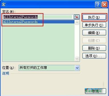 7、依次点击菜单栏上的工具---宏-----宏,选AllInternalPasswords,运行,确定两次;