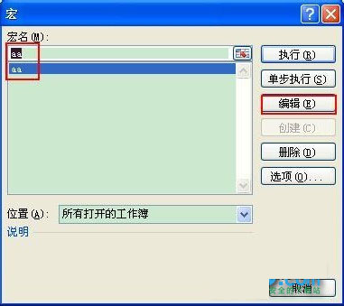 4、依次点击菜单栏上的工具---宏----宏,选aa,点编辑按钮;