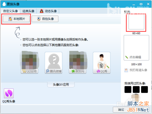 6、在打开的“更换头像”界面中,点击“本地上传”按钮,选择从网盘下载的图片进行上传,点击“确定"即可成功应用透明头像。