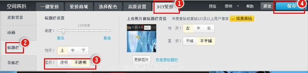 答:LZ你好 进入空间点自定义模式,接下来最上方会有自定义装扮,打开以后会有:使用自定义标题栏然后够选在保存就可以了。目前只有黄钻用户可以使用此功能。 很高兴为你解答~如果能够解决你的问题,记得在我们回答的答案上选择“采纳”哈。举手之劳,... >>详细