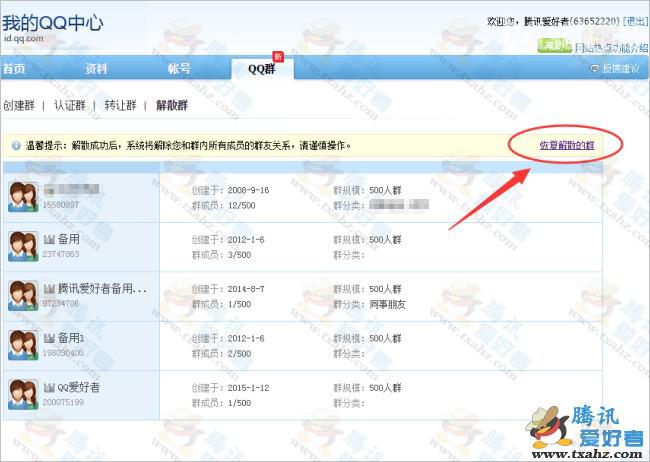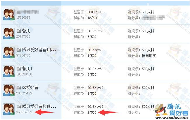 6、恢复成功后我们可以看到,刚才申请的群(群号365914023)已经变成500人群了。如下图: