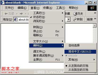 第五步:将 IE 编码设置为“简体中文(GB2312)”,如下图: