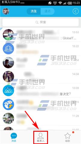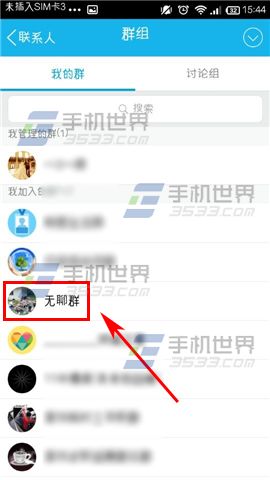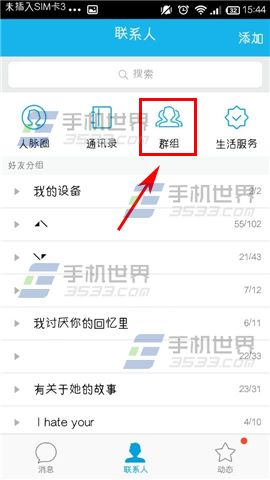1)打开手机QQ,点击【联系人】,选择【群组】。(如下图)