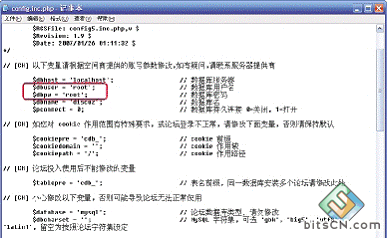 第二步:用记事本打开config.inc.php文件,将$dbuser、$dbpw的值均设置为root(如图2)。