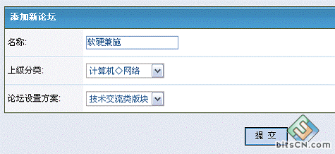 添加论坛:在此外,通过在不同项中的设置,便能添加“论坛分类”、“论坛”、以及“子论坛”。而如果添加的是“论坛”或“子论坛”,那么还需要用户在下拉菜单中选择“上级分类”或“上级论坛”(如图6)。