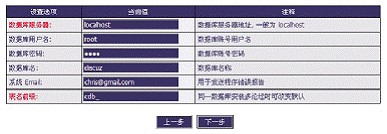 第二步:接下来是对数据库的设置,一般的,除了“系统Email”项以外,并不需要对其它的项目进行修改(如图3)。