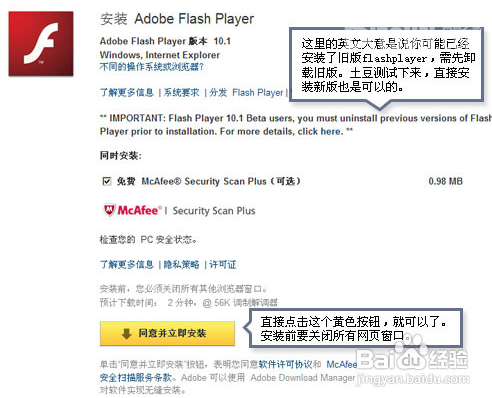 1、提示安装adobe flashplayer,请注意,在安装flashplayer之前需要关闭所有网页窗口