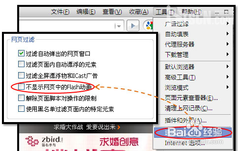 原因二:如果用的是the world浏览器,请关闭:工具-选项,不显示网页中的Flash动画。
