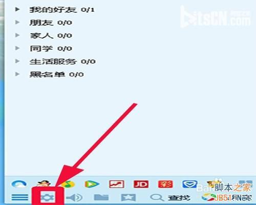 2、登录成功后,在QQ界面的右下角位置找到“设置”标志如下图红色框选中的图标,此时单击“设置”图标等待进入设置界面。