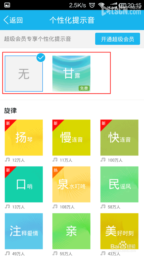 8、找到好友之后,添加之后,进入提示音设置,设置一个个性化的提示音(给免费的用户的选择只有一个)。