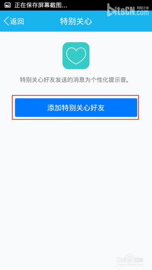 6、进入特别关心之后,点击添加特别关心好友。