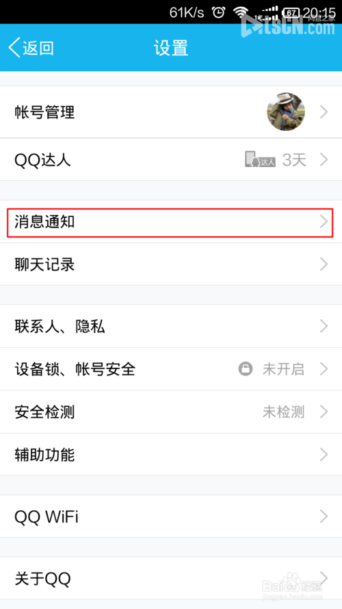 3、打开设置页面后,打开消息通知,进入消息通知设置。