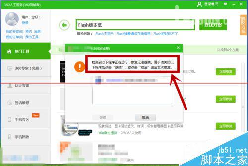 有时浏览网页时突然会提示Flash版本过低,造成无法浏览视频或网上编辑。你一时也找不到能够更新的地方对不对。360的人工服务就可以轻松解决。