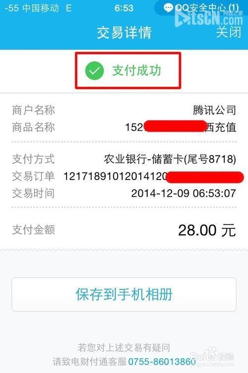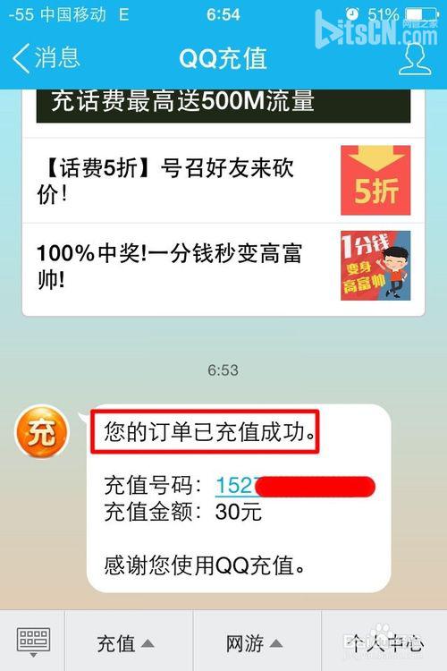 8、手机QQ收到提示:“您的订单已经充值成功”。