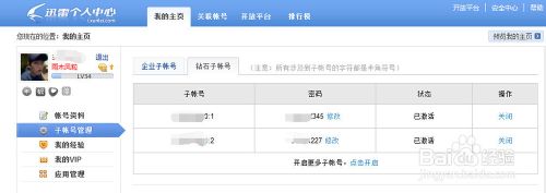 9、设置好子帐号,并启用后。可以把用户名和密码告诉你的朋友,这样你的朋友就可以用这个账号登陆,同时享受离线下载,下载加速等多种特权了。
