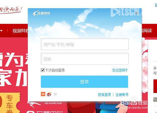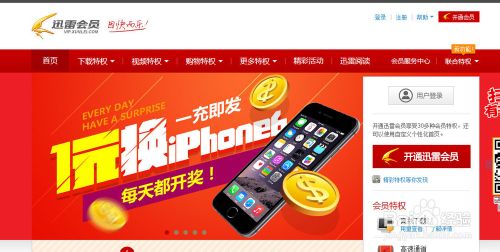 2、进入迅雷会员官网,点击右上角登陆