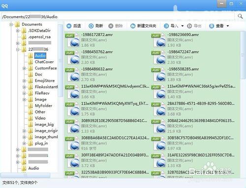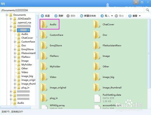 找到你要导出语音消息的那个QQ号文件夹,双击进入