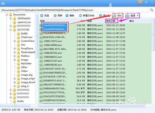 改变查看方式为【详细信息】,然后按【修改日期】排序,即可快速找到你要导出的语音。