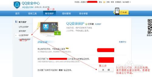 3、进入QQ安全中心(http://aq.qq.com/cn2/index),登录后在账号保护下点击QQ登录保护 ,并开通。其余见下图。