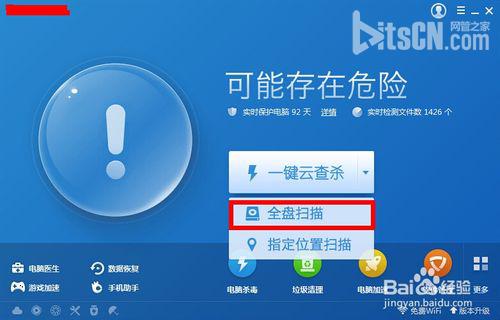 2、使用任意一款杀毒软件对电脑进行一次全盘杀毒。