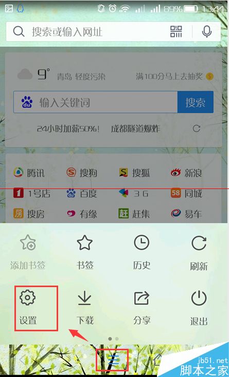 1、打开QQ手机浏览器,点击菜单-【设置】