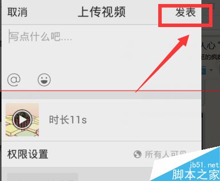 4、编辑一段话(随意),点击右上角”发表“就可以了。
