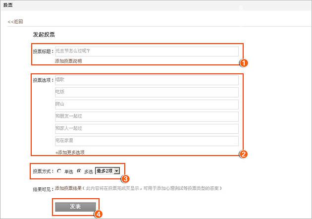 答:第一步:进入“投票”应用; 1、先进入“个人中心”,点击导航栏目的“更多”然后再点击“投票”。 2、进入后可以在个人中心面版看到”热门投票”“好友的投票“和“我的投票”。点击发起投票,发表自己的投票问题。 第二步:填写投票的相关内容; 写出自己的... >>详细