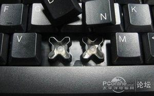 薄膜键盘的按键可以分为火山口和剪刀脚(X结构)两种结构,其中火山口结构是键盘中最常用的设计,它是将按键插入键盘上的接口后,底部直接与硅胶帽接触,在手感上受到键柱长度和硅胶帽弹力的影响。 一般的火山口结构的按键都采用高键帽,长键程设计,这样可以得到良好的反馈感,而不足之处在于相应机身要做得较厚,而且按键的稳定性稍差,容易发生晃动,点击时不能获得非常一致的手感。 剪刀脚结构有着按键低矮,占用空间少、受力均匀等优点,但是由于结构较为复杂,造价略高,因此最早也只是使用在笔记本电脑上,近年来才在台式机键盘上应用。与火山口结构不同的是,剪刀脚结构是从四个边角处对按键进行支撑,因此它的按键更加稳定,受力均匀,虽然键程相应缩短,但是在手感方面还是不错的,而且静音效果更好。