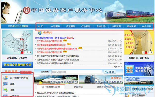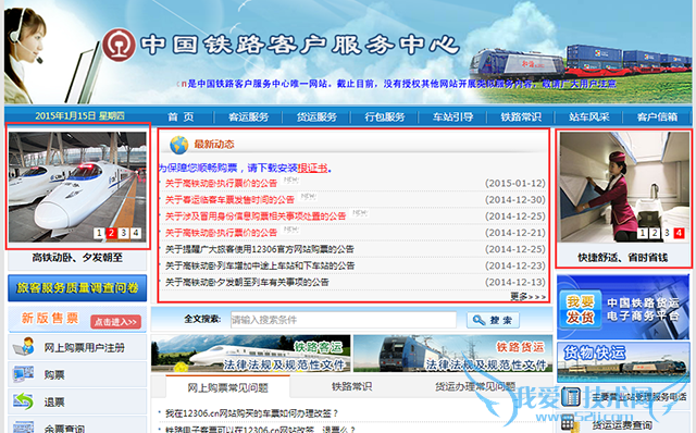 首屏对网站有多重要不用多说,尤其电商网站。但12306作为一个票务订购的网站,首屏部分却展示了一些无关紧要的内容,以幻灯片形式滚动出现的“车站风采”和网站正中位置出现的“最新动态”等都是不必要的板块,这些不重要的内容竟然占了首屏中的85%。而且设计师在左上角和右上角的展示中使用了图片轮换的展示方法,这会让网站在大流量访问时的加载速度更受影响。