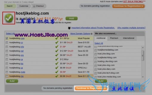 3、如果出现下图这样子的提示,说明域名可以注册,点击