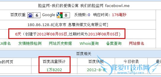 再来看下操作的难易性,目前排在第一的这个脸盆网,创建时间才六天,但是流量已经有每天几万的ip了。运用良好的seo技术超越他不是问题。