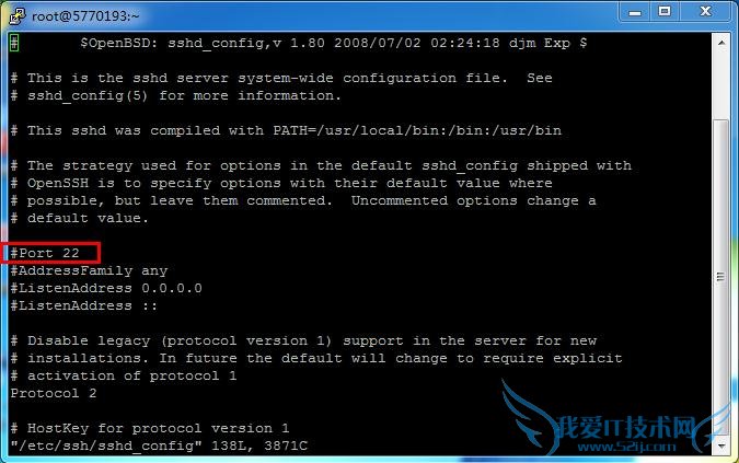 找到#Port 22,去掉前面的#,并修改为Port 1998(此数字尽量用4位数,避免被占用其它端口),