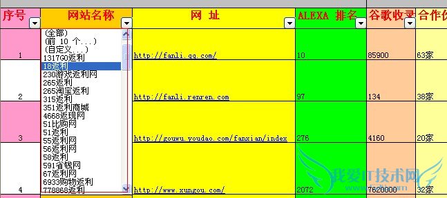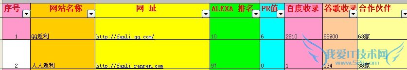 ALEXA排名、PR值、百度收录、谷歌收录、合作伙伴、返利比例、返利时间、提现起点、服务器、推广途径、客户情况、关键字指数