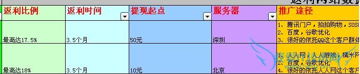 返利比例——从表中可以看到规模越大,越正规的网站给用户的返利越少。