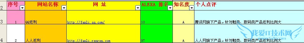 知名度——这是我在数据收集中根据自己理解做的评级,共有A、B、C、D 4个级别,是根据商城数量,返利比例,网站知名度考评的。