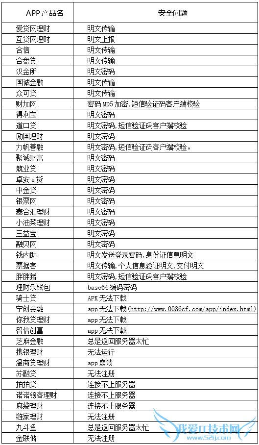 显而易见的风险存在于P2P手机应用中,正规P2P网贷平台对安全十分重视,那些小平台和诈骗平台根本没有实力、或者根本没花心思去提升网站安全性。以下是猎豹移动安全实验室对部分P2P类手机应用的分析结果:
