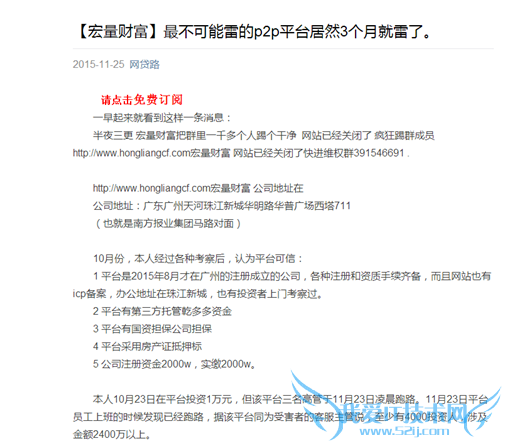 即使是实地考察过的,平台有正规备案的也可能因为经营不善,资金链断裂而跑路;部分平台在经营正常的情况下,负责人也可能由于贪婪而卷款跑路,甚至连平台自身工作人员都不知情。目前宏量财富的受害者们已经建立维权群并报案。