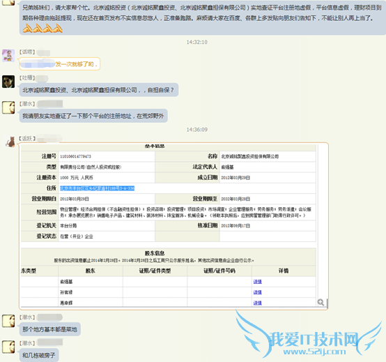图16 某P2P曝光群曝光的某诈骗平台的虚假注册信息