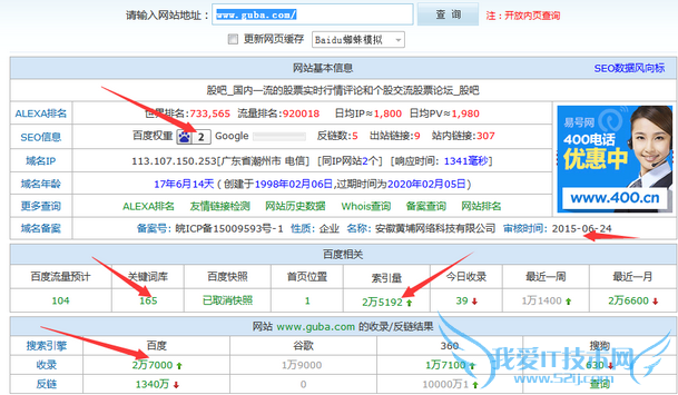 1. 域名的优势。我们的网站域名是顶级双拼老域名“guba.com”,域名拼音和关键词“股吧”完全匹配,且其前身是英国知名大站,因而到目前该域名还有一定量的高质量外链和直接访问人群,虽然这一部分很少。