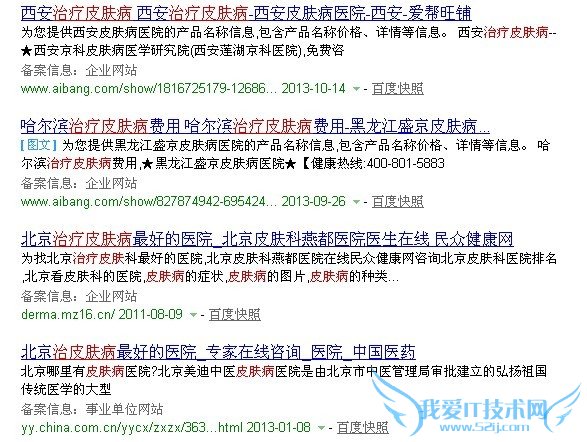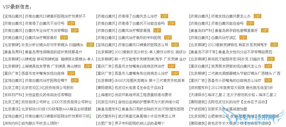 进入比比贴网站,就可以看到首页下面都是VIP发布的信息,而且这些信息都是医疗广告。百度对买“卖火车票机票”、“医疗”特别敏感,就比如你在百度搜索“火车票”,显示的网站明显有特别之处,就是下面有“网站的备案信息”,告诉用户哪些是个人备案或者企业备案及最有权威事业单位备案,更好地提醒用户辨认。而比比贴分类信息全都显示这