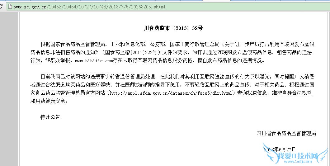我今天在百度新闻源搜了一下比比贴官方地址,一看吓一跳,原来四川人民政府网站曾官方批评过,具体有一点说明是:“经群众举报,比比贴(官方写的是网址)存在未取得互联网药品信息服务资格,擅自发布药品信息的违规情况。目前我局已对该网站的违规事实转省通信管理局处理,在此我们对其利用互联网违法宣传的行为予以曝光。同时提醒广大消费者通过合法渠道购买药品和医疗器械,并在医师或药师的指导下使用”。官方表明已转省通信管理局处理,而我也在SEO站长工具查了下比比贴网站的备案信息,最近通过的时间是2013年07月30日,笔者猜测通信管理局处理过,后来比比贴又重新备案了。