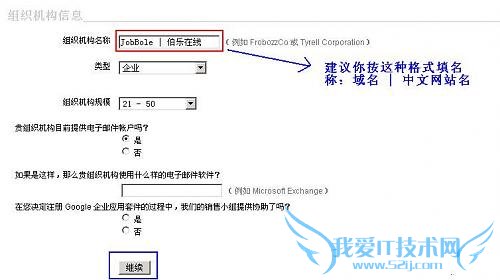 建议:如果你是企业站,在填“组织机构名称”的时候,按这种格式填:“域名 | 网站中文名”。比如:“JobBole | 伯乐在线”。这样既能照顾老外,也能顾及到国人。进入下一页;