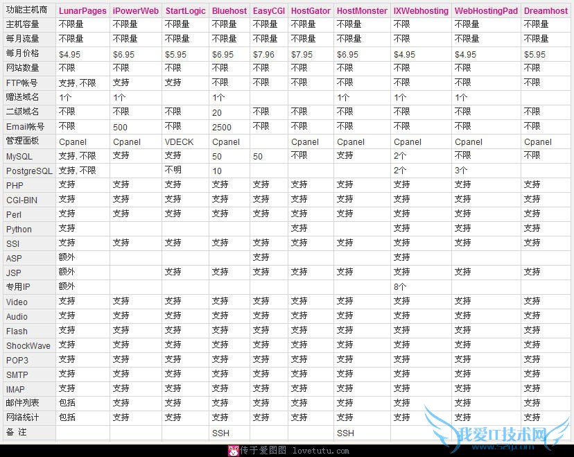 十大国外虚拟主机总体对比,点击看大图