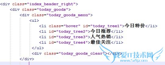 第二步,找到上图所需移植部分相对应的class名,这个class名在首页的模板文件里面找,这其中就需要你有一定的html知识,要知道哪一段代码是你要找的。这里我们找到这个class名为 today_goods,如图: