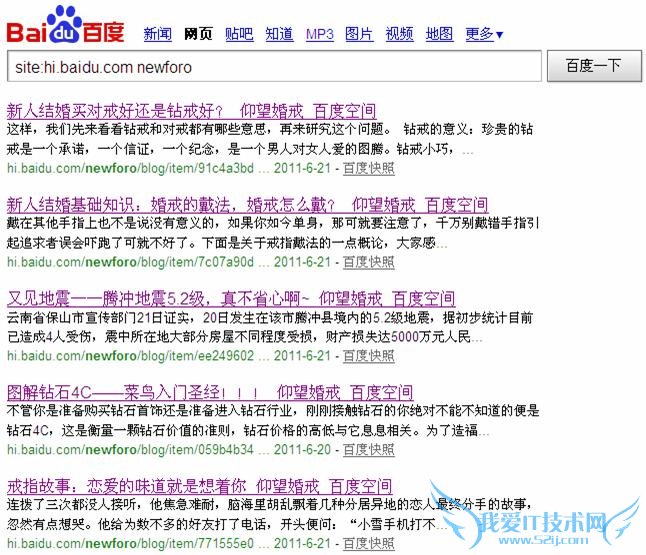 我知道有一些朋友也提到过百度空间不给收录的问题,不知道这些朋友是不是也用的中文注册名。反正我是觉得问题出在这里了,于是我当机立断,放弃了中文注册名的百度空间,另外注册了一个英文注册名newforo的百度空间,刚刚注册的当天立即发表了一篇文章,那是一篇从原来中文注册名的百度空间转载过来的,只改了个标题。十几分钟后,我查询文章收录:site:hi.baidu.com newforo,赫然发现这篇文章已经被百度收录。第二天我又发了4篇文章,百度又很快收录了。而反过来看那个中文注册名的文章收录情况,我特意一篇篇地按照标题查找收录,愣是一篇也没有被收录。由此可见,百度对于自家产品百度空间确实是很亲的,只是你应该选择英文注册名来开通空间,而不是用需要解析的中文注册名。