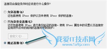 在下一界面上选择阻止连接,意思是不允许向这个远程的端口发送数据,也就是把这个端口关闭封掉了。