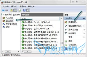 这时会打开一个叫高级安全Windows防火墙的窗口。在左边选中出站规则,然后在最右边的窗口操作下面点击新建规则。